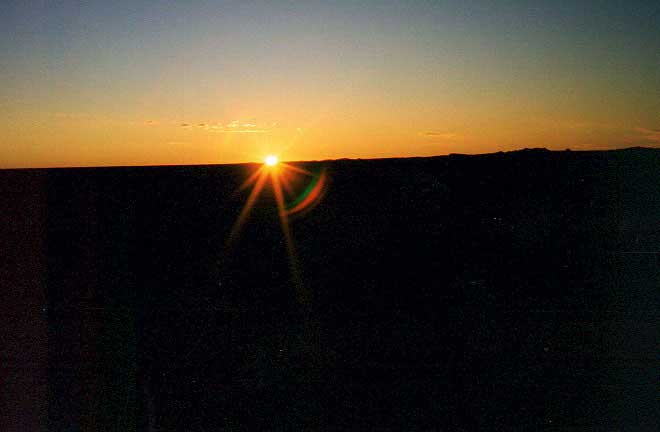 地平線の美しい太陽。寒いので、なかなか眠れない。GPSが作動すると生き返った気分になる。