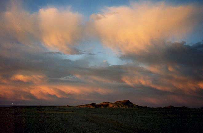 オレンジ色の風景が素晴らしい。あと 50kmなので、途中でラクダと野生動物と出会う。
